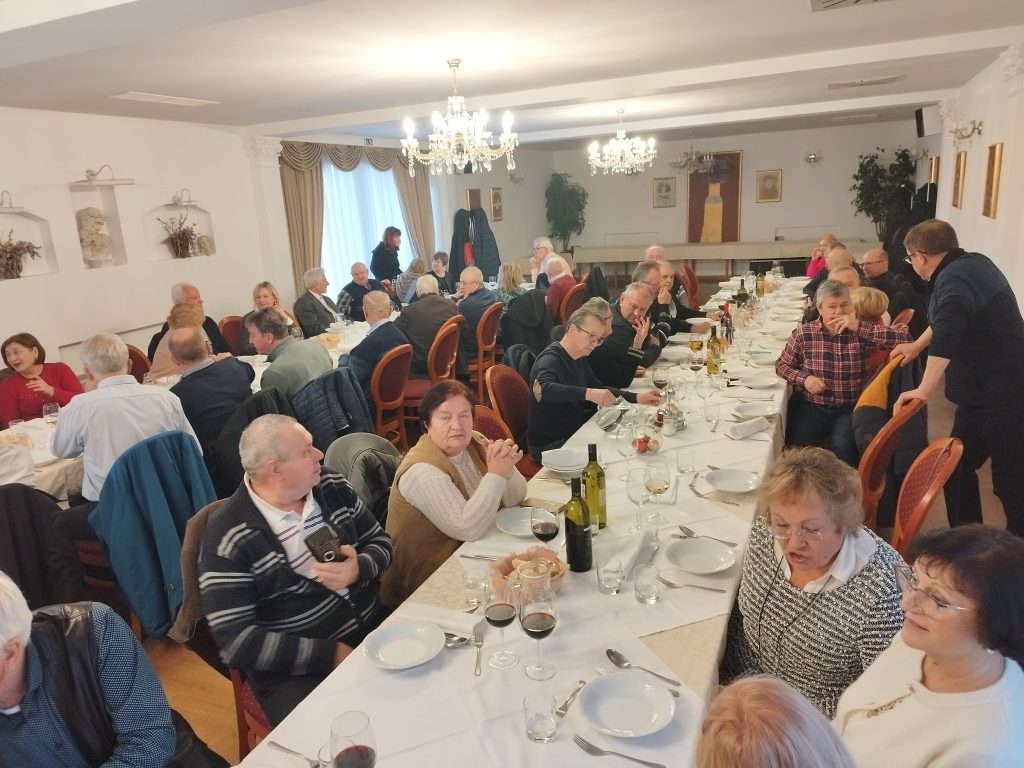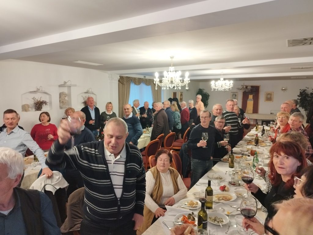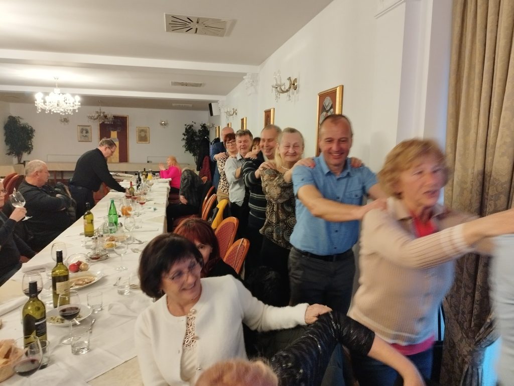 Pa smo odkljukali še en dogodek – novoletno srečanje, ki smo ga tokrat, namesto v decembru, organizirali v mesecu januarju, ko smo si vsi že dodobra odpočili od decembrskih praznovanj. Srečanje je bilo v Gostilni Pečarič na ljubljanskih Vrhovcih, kjer so nam postregli z okusno domačo hrano ter odličnim vinom.Udeležence je uvodoma pozdravil predsednik društva, Ivo Bajec, ki se je vsem zahvalil za udeležbo ter izrazil pričakovanje, da bi se tudi v bodoče na dogodkih srečevali v tako velikem številu. V nadaljevanju popoldneva je podpredsednik, Drago Sotlar, poskrbel, da smo se tudi zabavali in nasmejali, seveda pa je za ples in dobro voljo ves čas skrbela naša glasbena skupina Fosili – Ivek, Ida in Franjo.