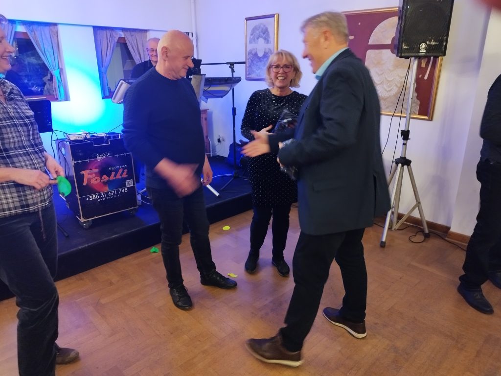 Podpredsednik Drago je tudi tokrat poskrbel, da smo se malo igrali in nasmejali, za ples in dobro voljo pa je ves čas skrbel Duo Fosili.